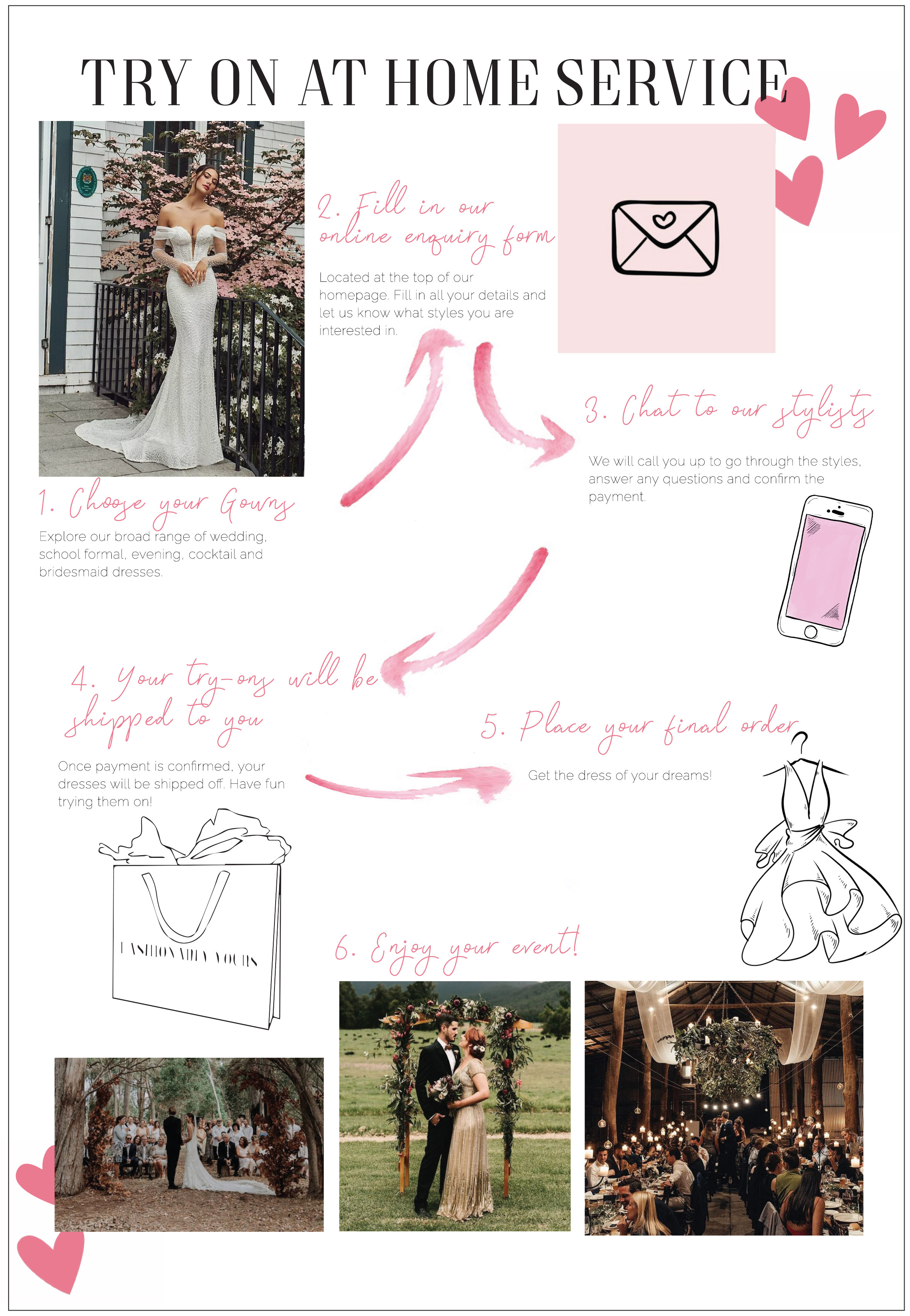 Try At Home Service Try Wedding Gowns Bridesmaid Dresses School Formal Dresses And More At Home Australia Fashionably Yours Bridal Formal Store Wahroonga